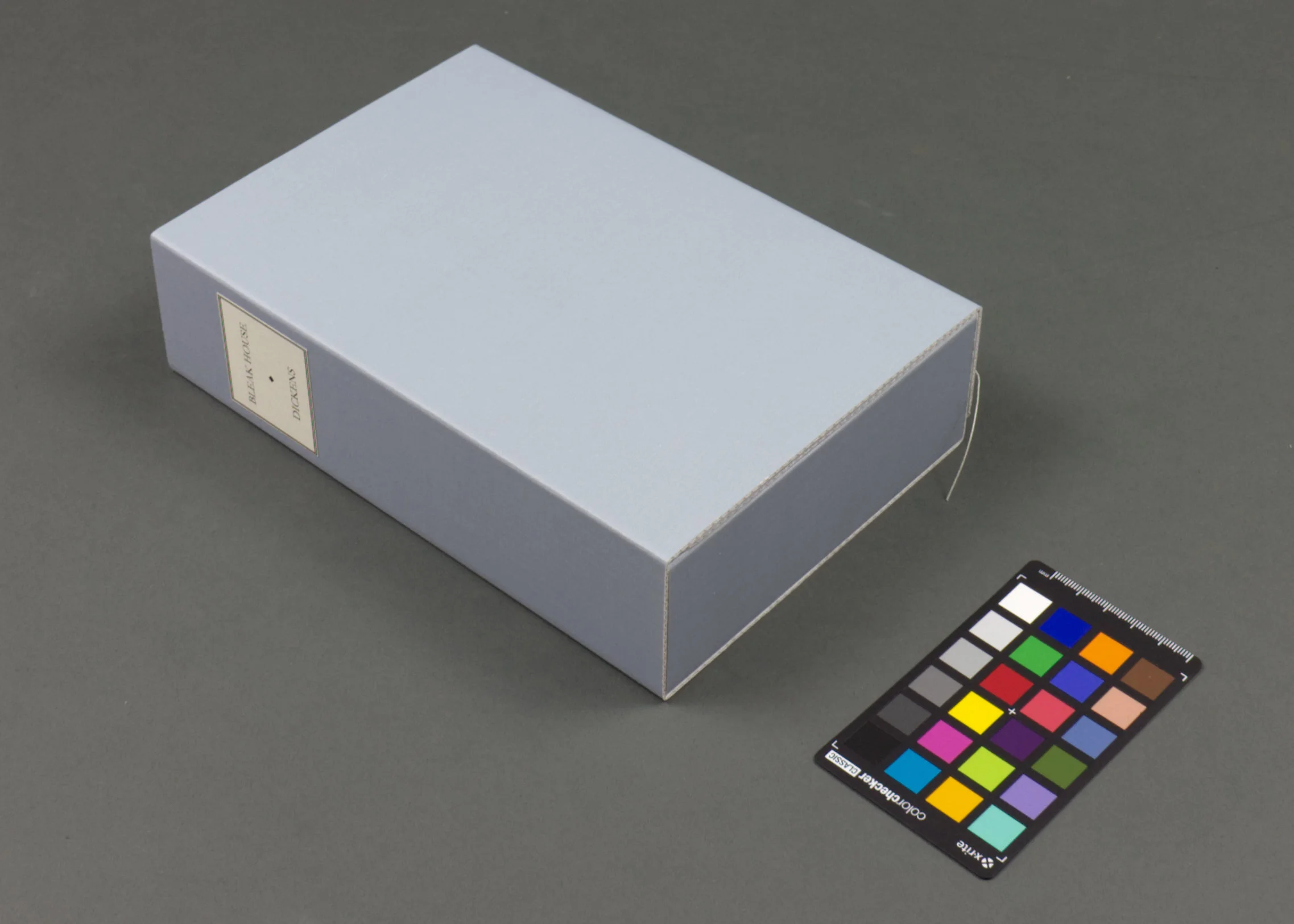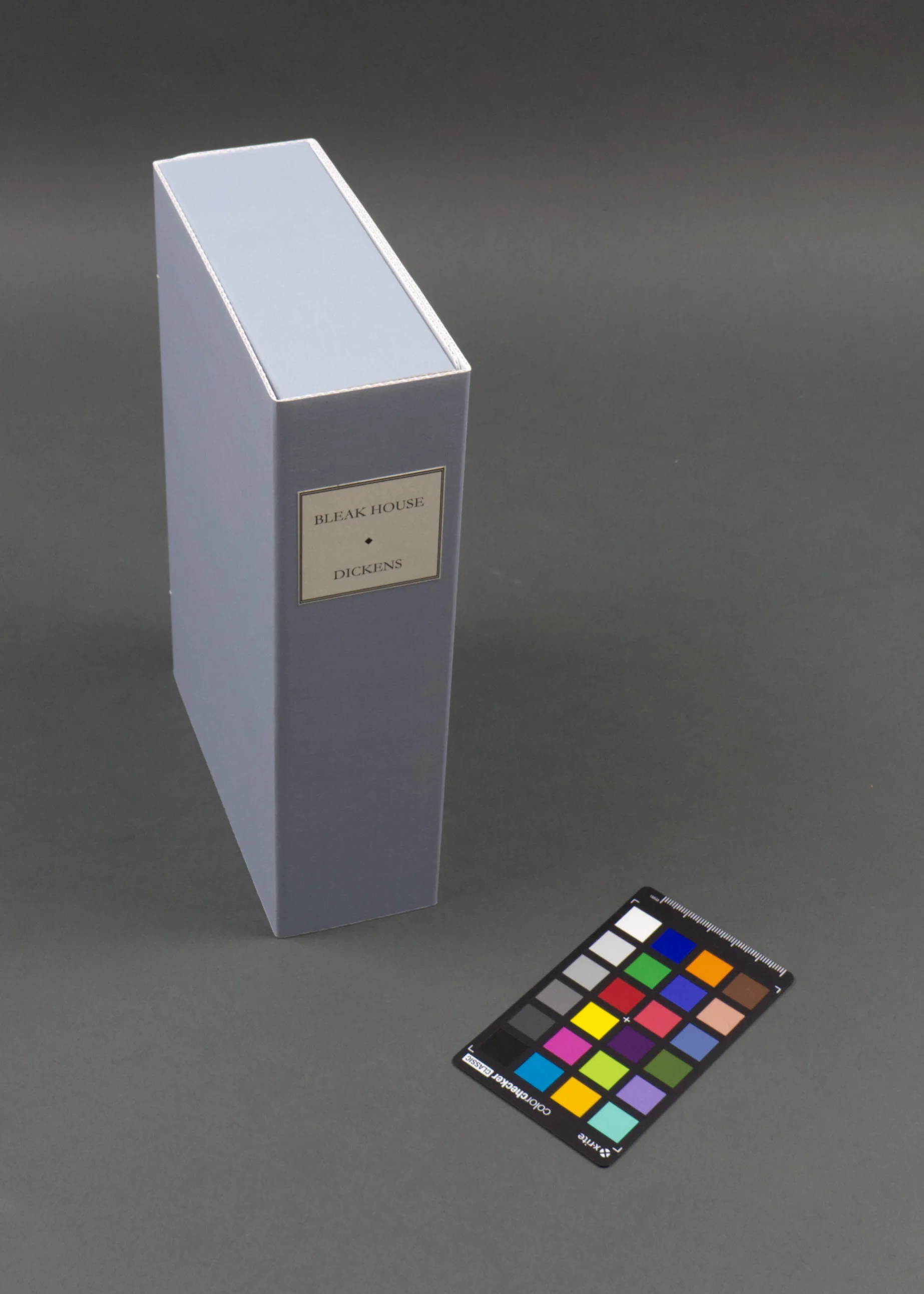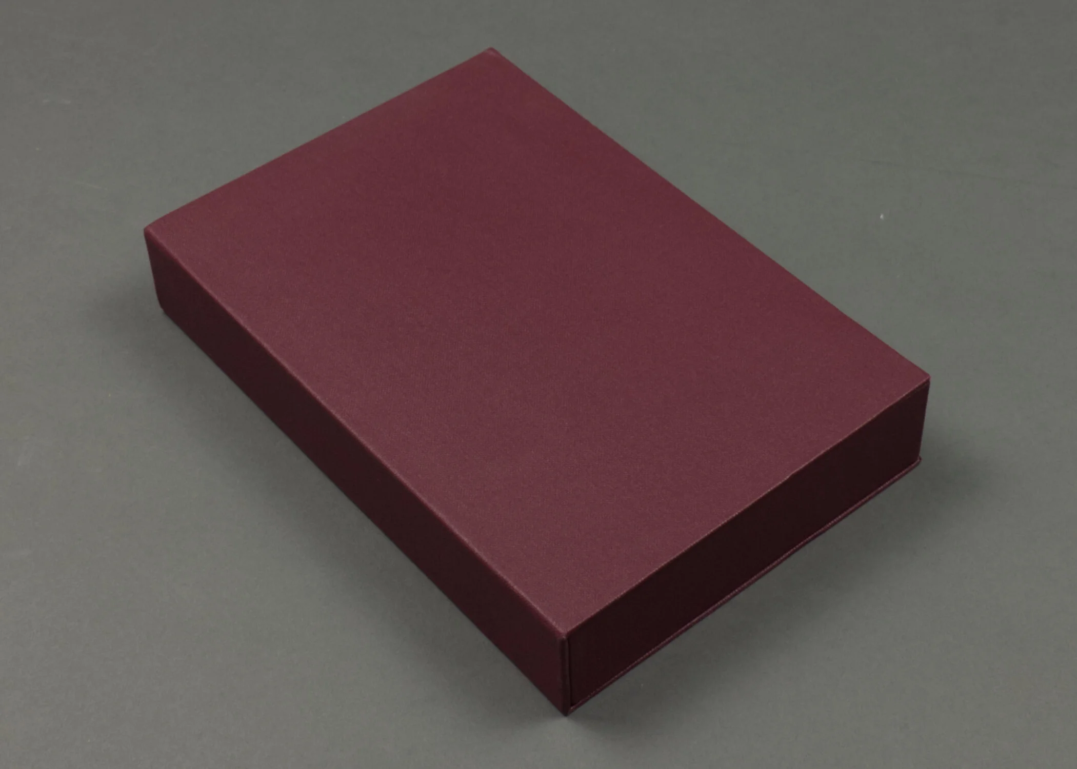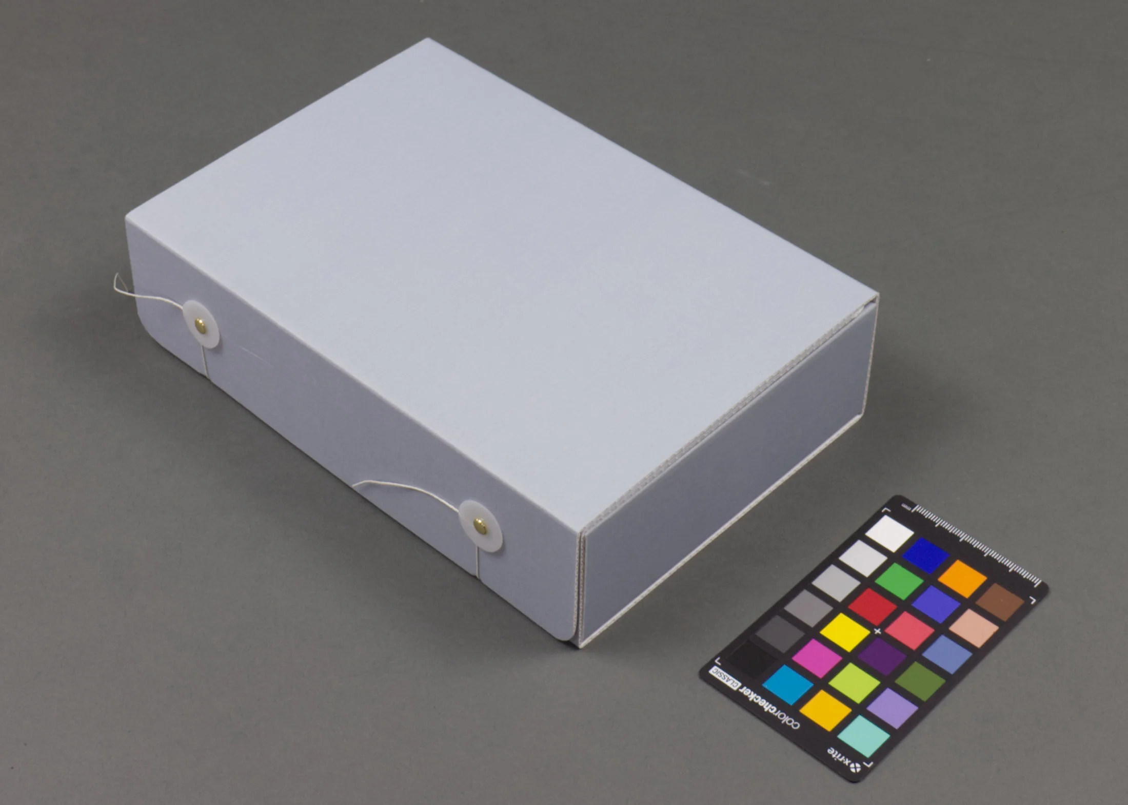 Phase boxes are an economical option to protect books while still having an enclosure that opens completely flat allowing the easiest way to remove and replace the item in the enclosure. NS Conservation makes its phase boxes from archival e-flute board with brass rivets, polyethylene washers, and linen thread making the closure mechanism.