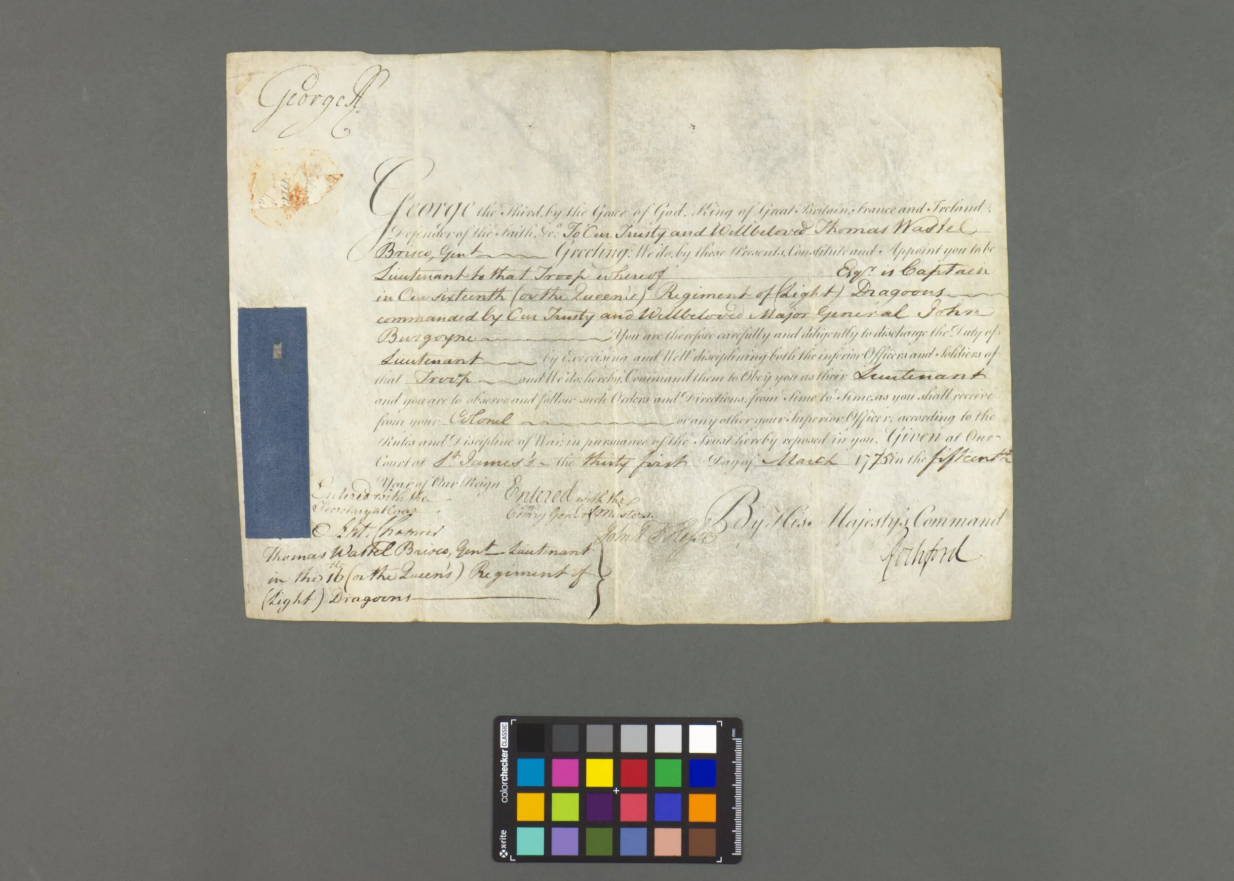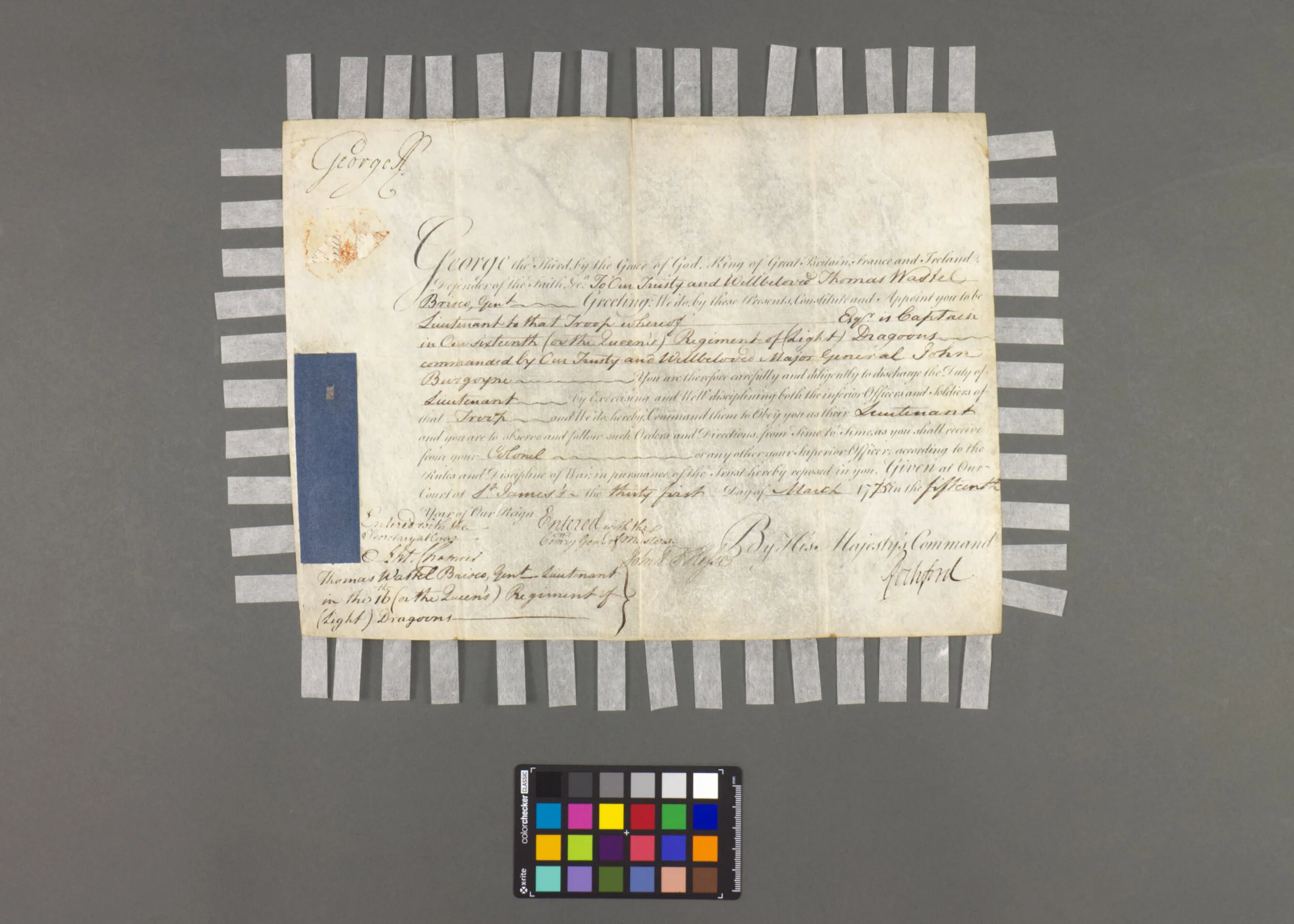 This document was cleaned front and back before being guarded with thin Japanese paper restrains designed to apply even pressure to the document and crucially to tear before the document will. Then it was matted for storage.
